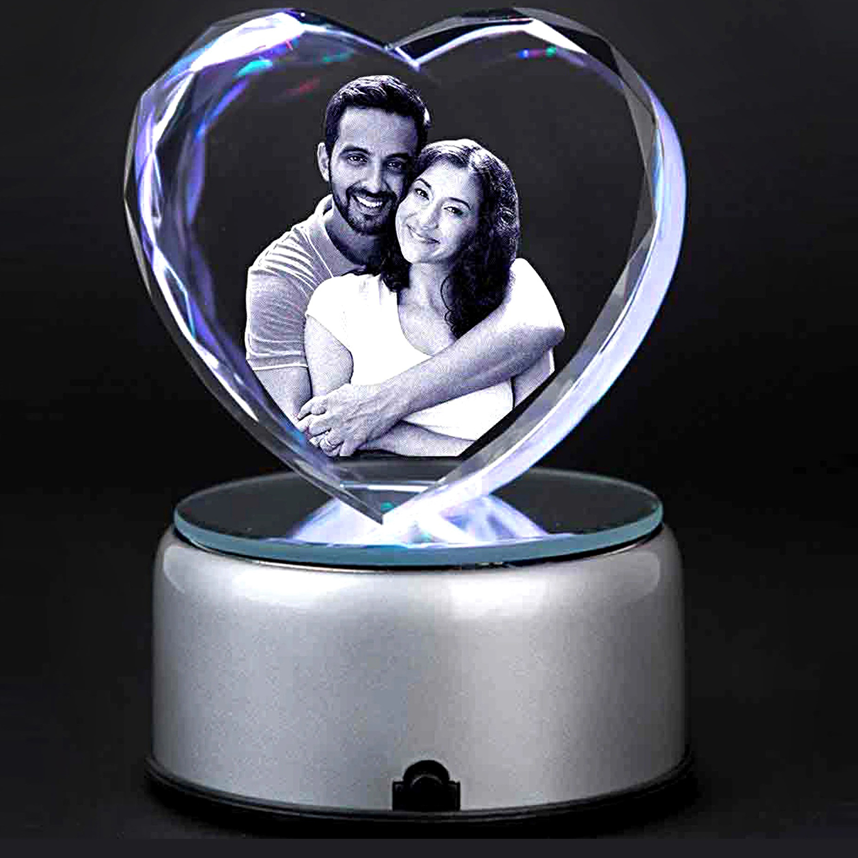 Crystals are provided with multicolored LED light base which gives multicolored effect to the photos and crystal.